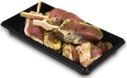 Wij bieden alleen bakjes aan, geen schotels. Wij doen dit om voor u een zo compleet mogelijk assortiment aan te bieden. Wij adviseren 300 gram vlees per persoon, gaat u gourmetten met 4 personen heeft u 1200 gram nodig. De bakjes zijn gevuld met 200 gram vlees dus besteld u 6 bakjes naar wens.